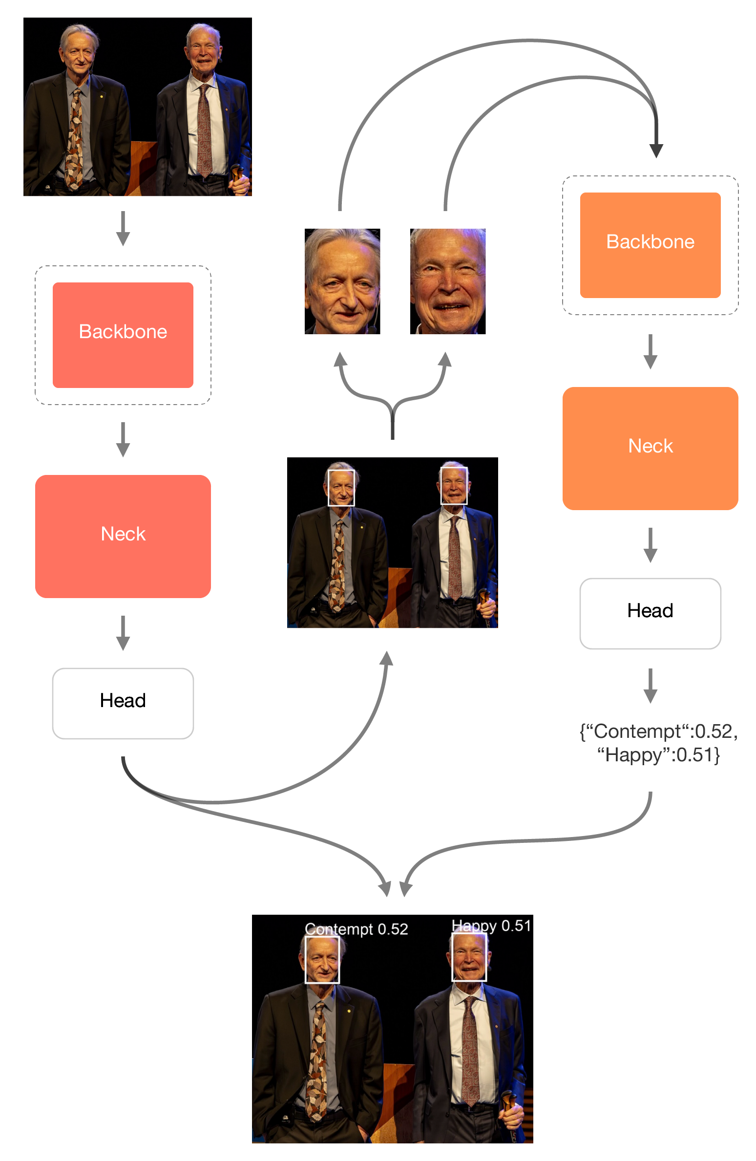 Early on, we tried training a single YOLO model on both face detection + facial expression datasets, but ran into issues like catastrophic forgetting and dataset mismatch.